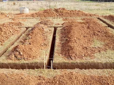 Организация котлована: Начальный этап заключается в выемке земли до достижения водоносного слоя. Глубина и ширина котлована зависят от множества условий, включая тип почвы.